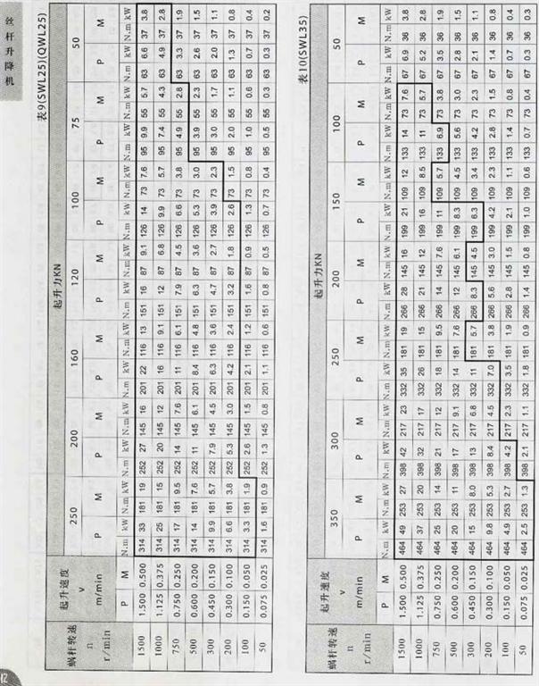 SWL25-SWL35絲桿升降機(jī)配套功率