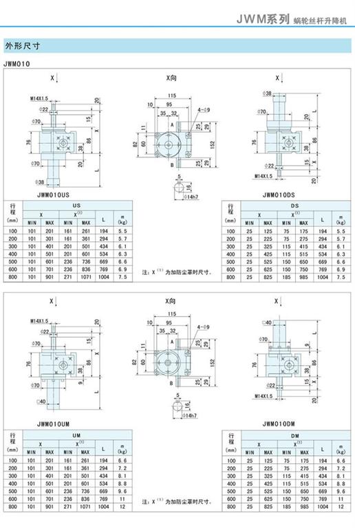 減速機|蝸輪絲桿升降機-JWM升降機010外形尺寸圖-海洋傳動