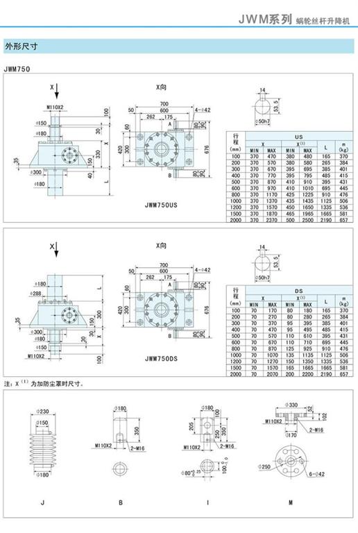 減速機|蝸輪絲桿升降機-JWM升降機750、1000外形尺寸圖-海洋傳動