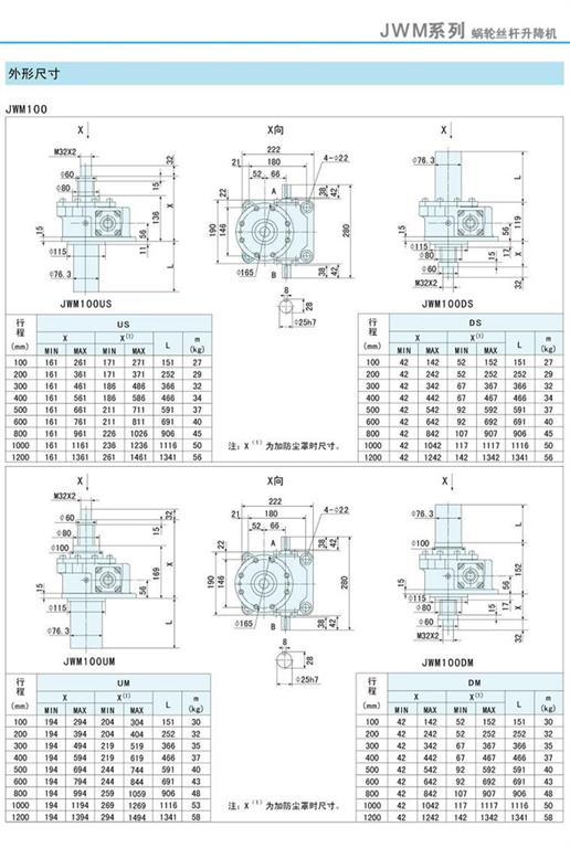 減速機(jī)|蝸輪絲桿升降機(jī)-JWM升降機(jī)100外形尺寸圖-海洋傳動