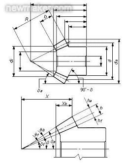 傘齒輪加工圖面及尺寸標注的標準范例, 比較進化的傘齒輪要項尺寸計算(表, 程序)中, 其尺寸, 強度計算項目的順序也都是依傘齒輪設計的程序順次排序. 其目的非常明顯。 除了Mitter Gear(兩齒數(shù)相同的傘齒輪組合)外, 傘齒輪的設計必須連同相咬合的傘齒輪一并加以考量(單一傘齒輪是不具意義, 無從設計的), 除了齒數(shù)的組合之外,正確的咬合也是很重要的。