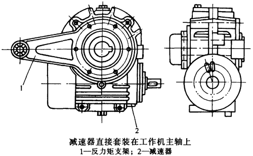 另一端與固定支承聯(lián)接(見下圖)。用戶如采用反力矩支架來(lái)平衡反力矩,應(yīng)根據(jù)設(shè)備安裝要求同減速器一起向制造廠訂貨。